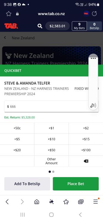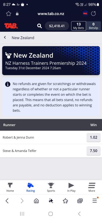 How amazing at Addington that Robert and Jenna trained 7 winners on the 10 race card, and John Dunn drove 7 winners, 6 for Robert and Jenna and 1 for Bob Butt. Must be a record of some sort. Amazing achievement, well done to all.