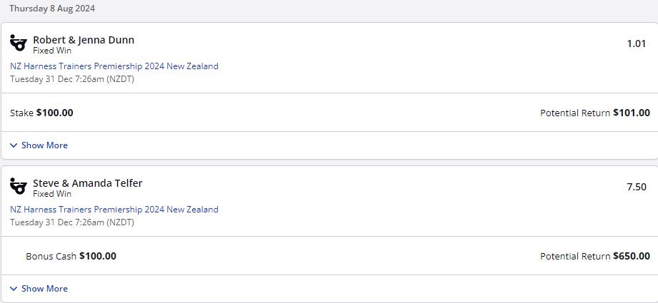 Can always cover yourself especially once Telfers go out to $5 - they are out to $3 plus now. But really for the numbers they have in work their results are awful. Their wages bill alone wouldn't even be paid by the total stakes won let alone any other costs
