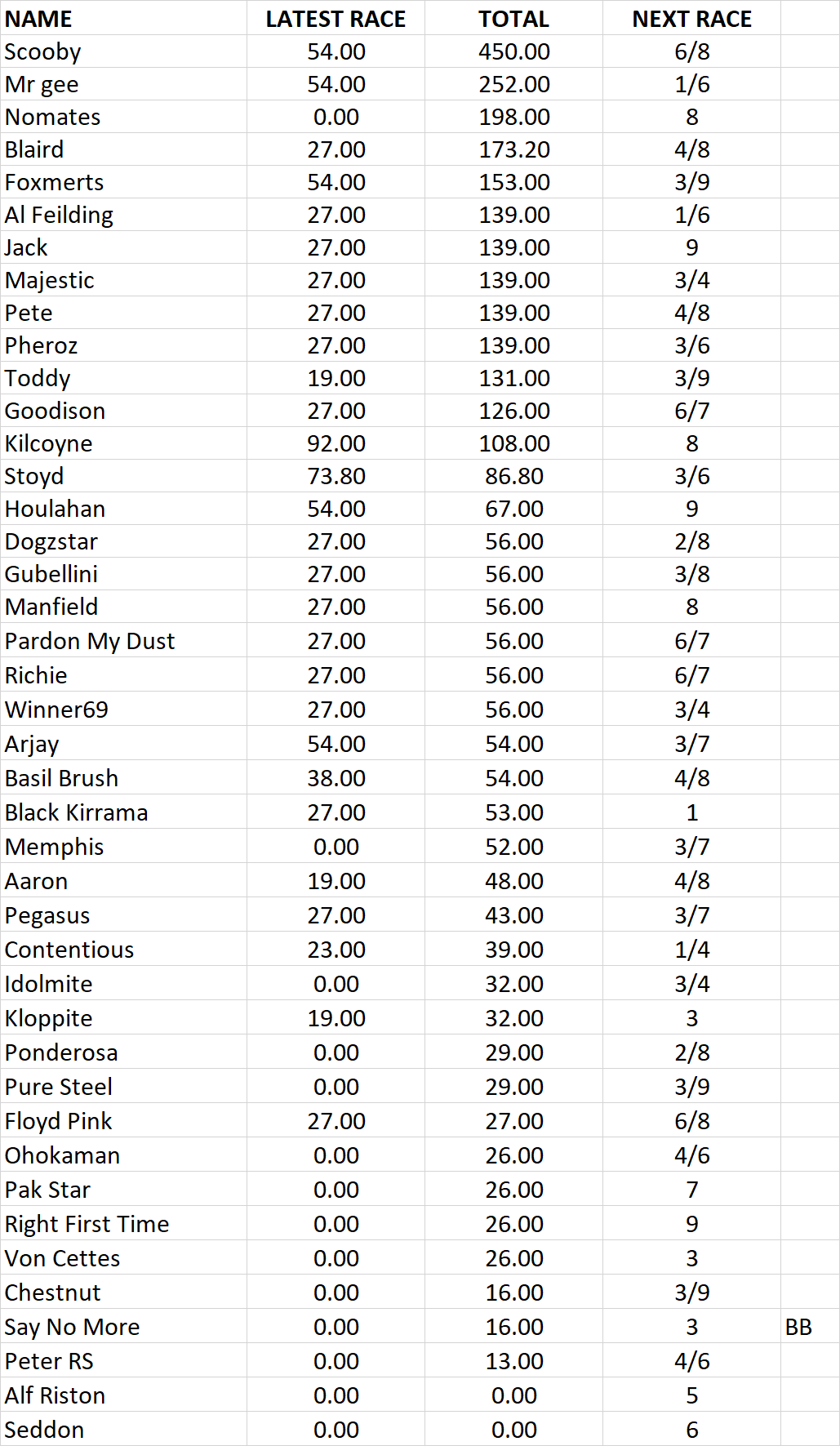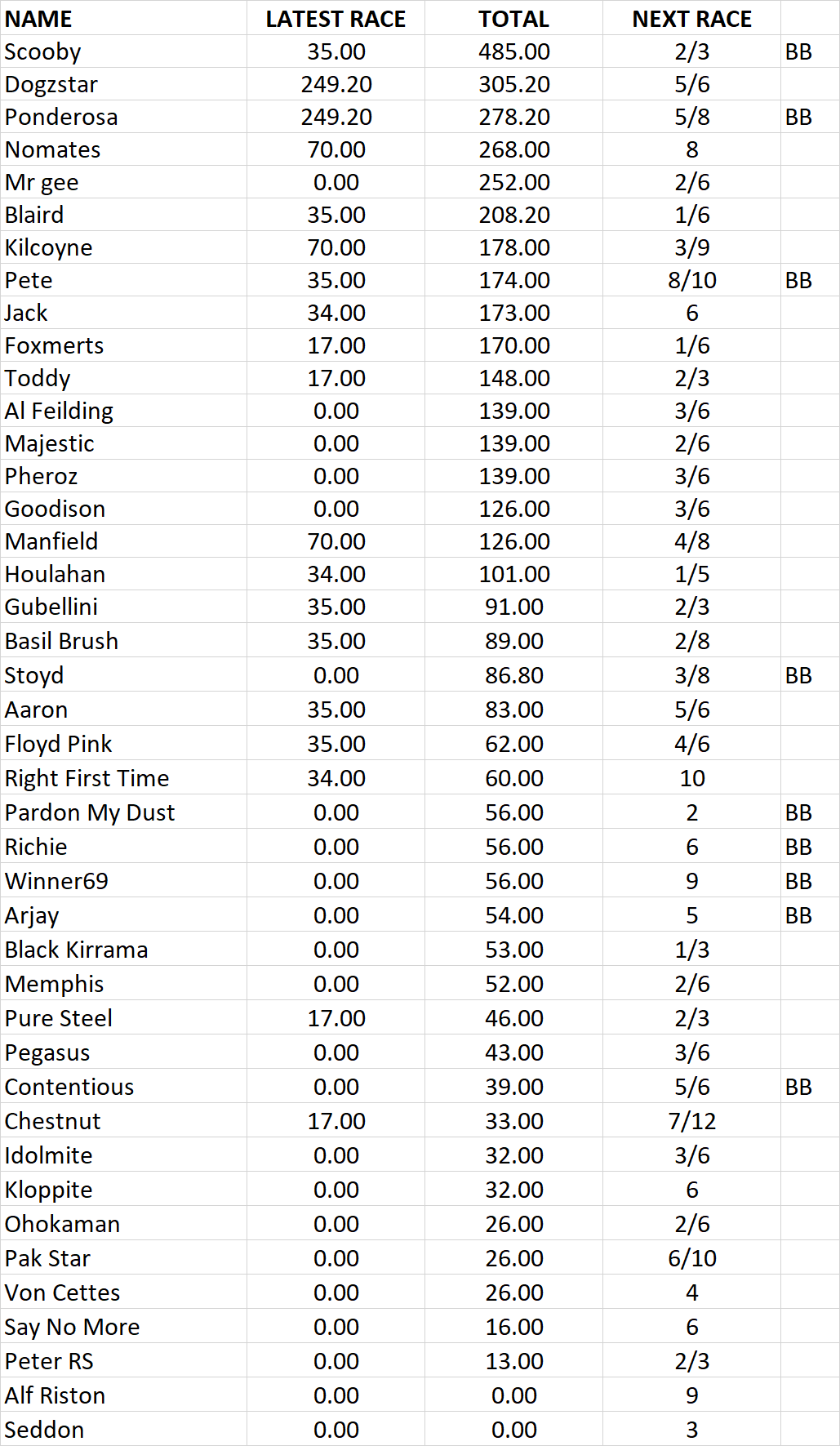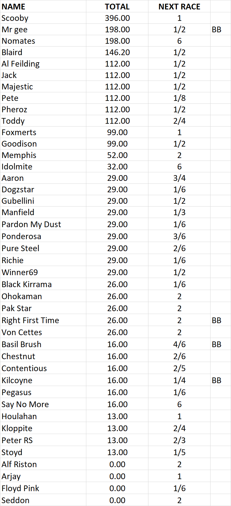 Scooby with two single bet winners in a row - he told me during the week the jumps races looked easy.