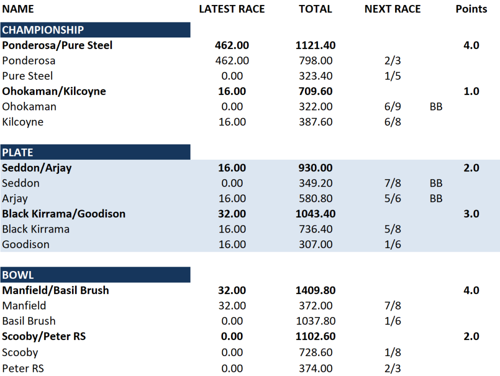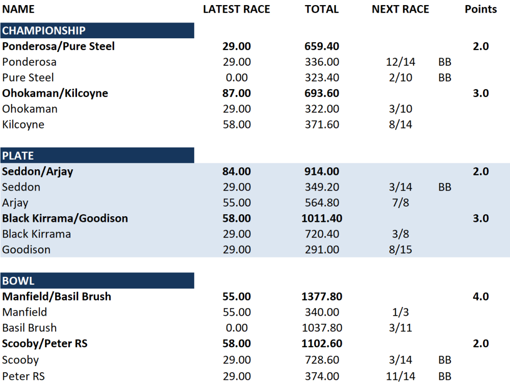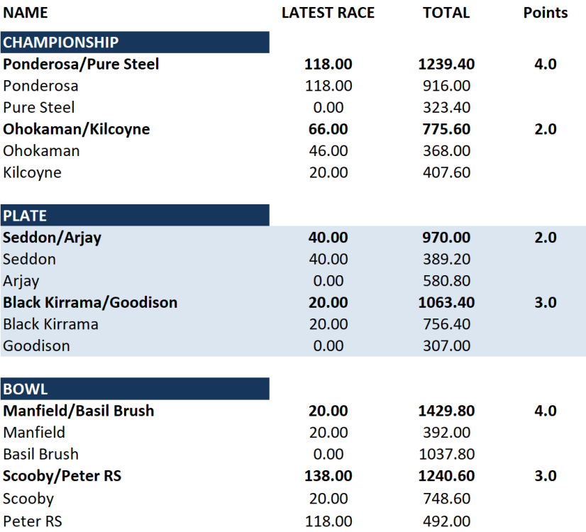 Ponderosa with a very nice best bet quinella to take a healthy lead.