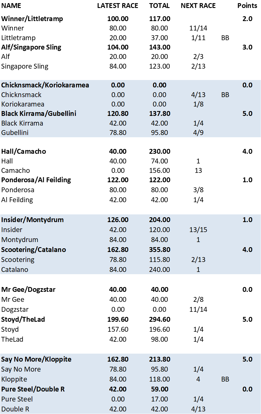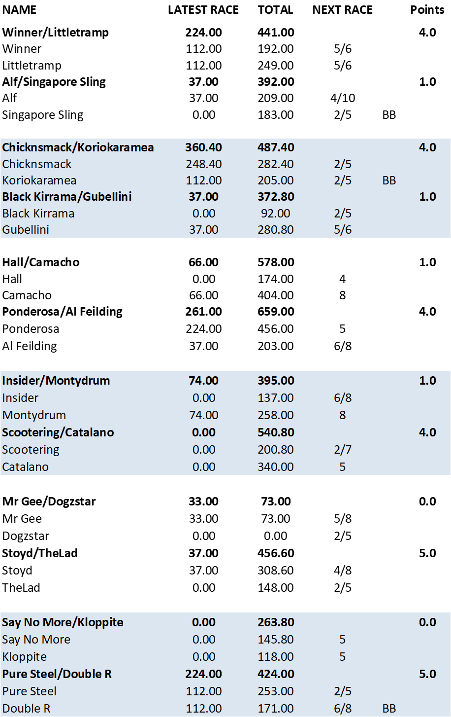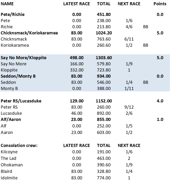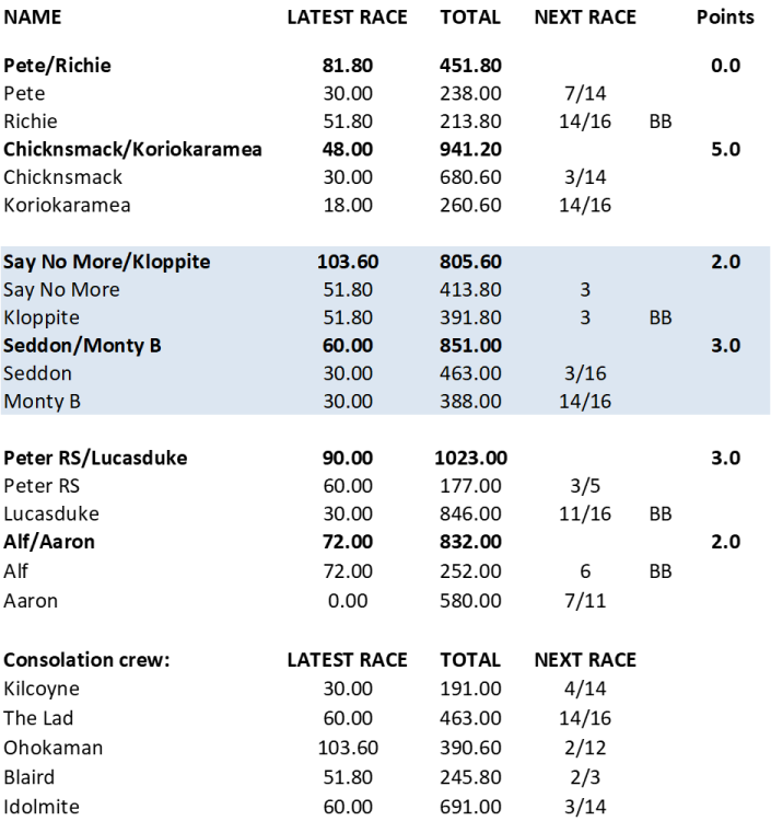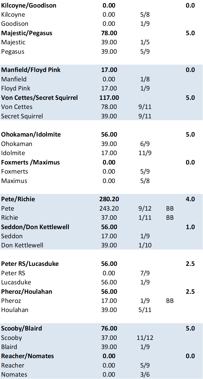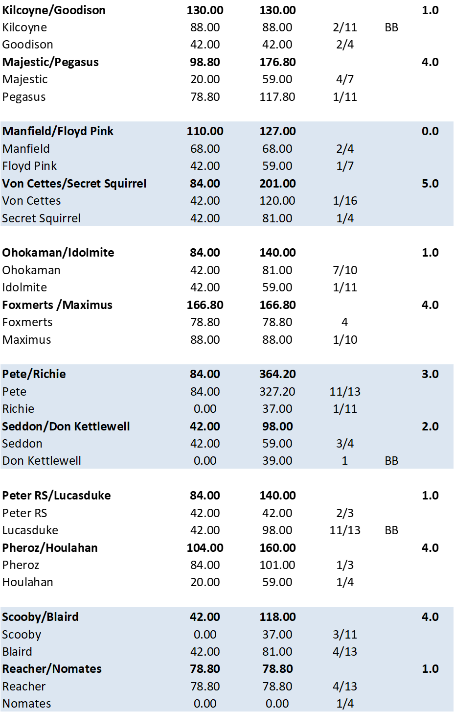 Yeah sorry Al.  I feel a bit bad about that - went through and picked them quite quickly at random and assigned the best bets randomly as well.