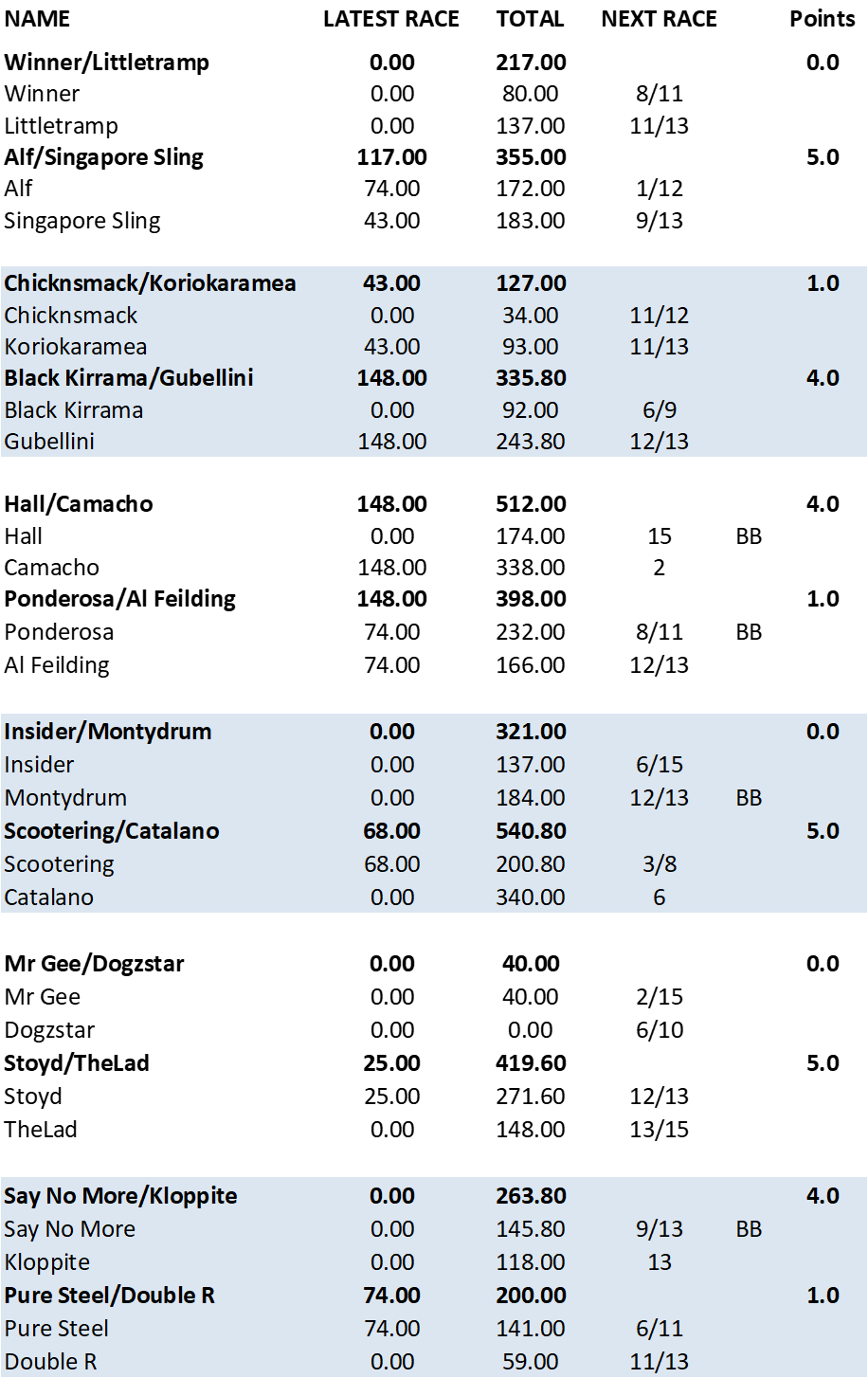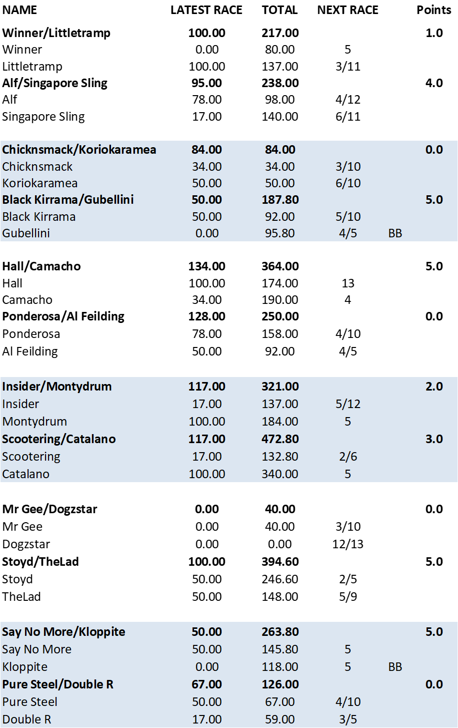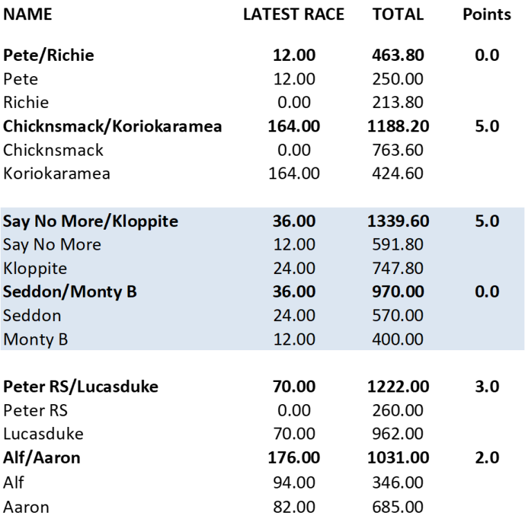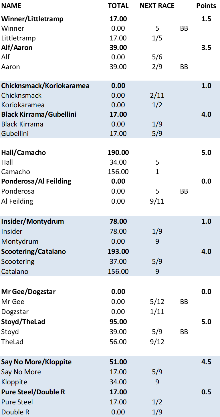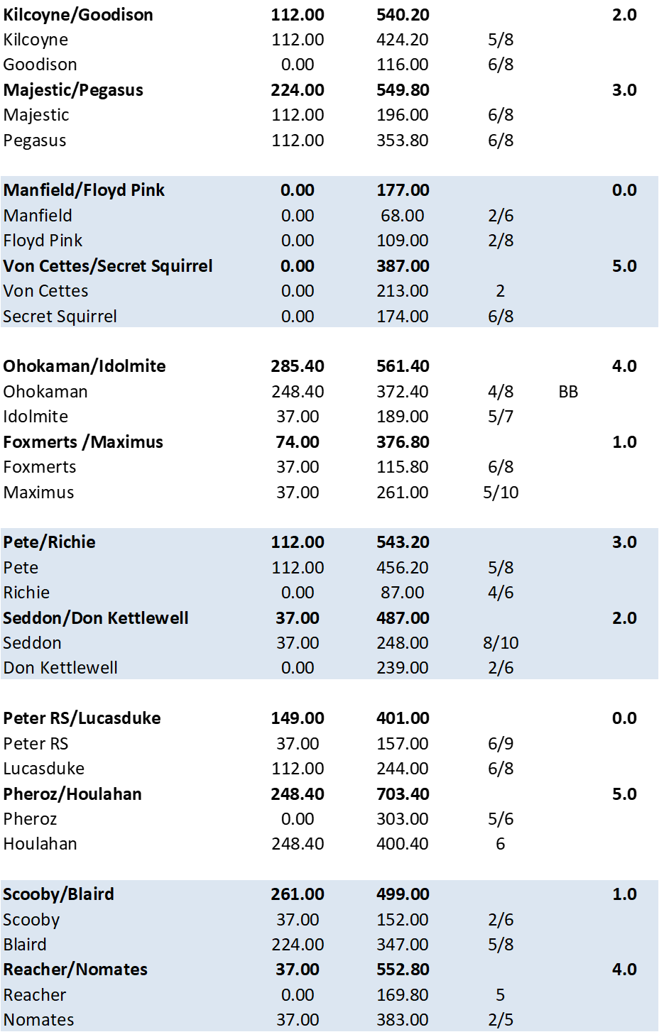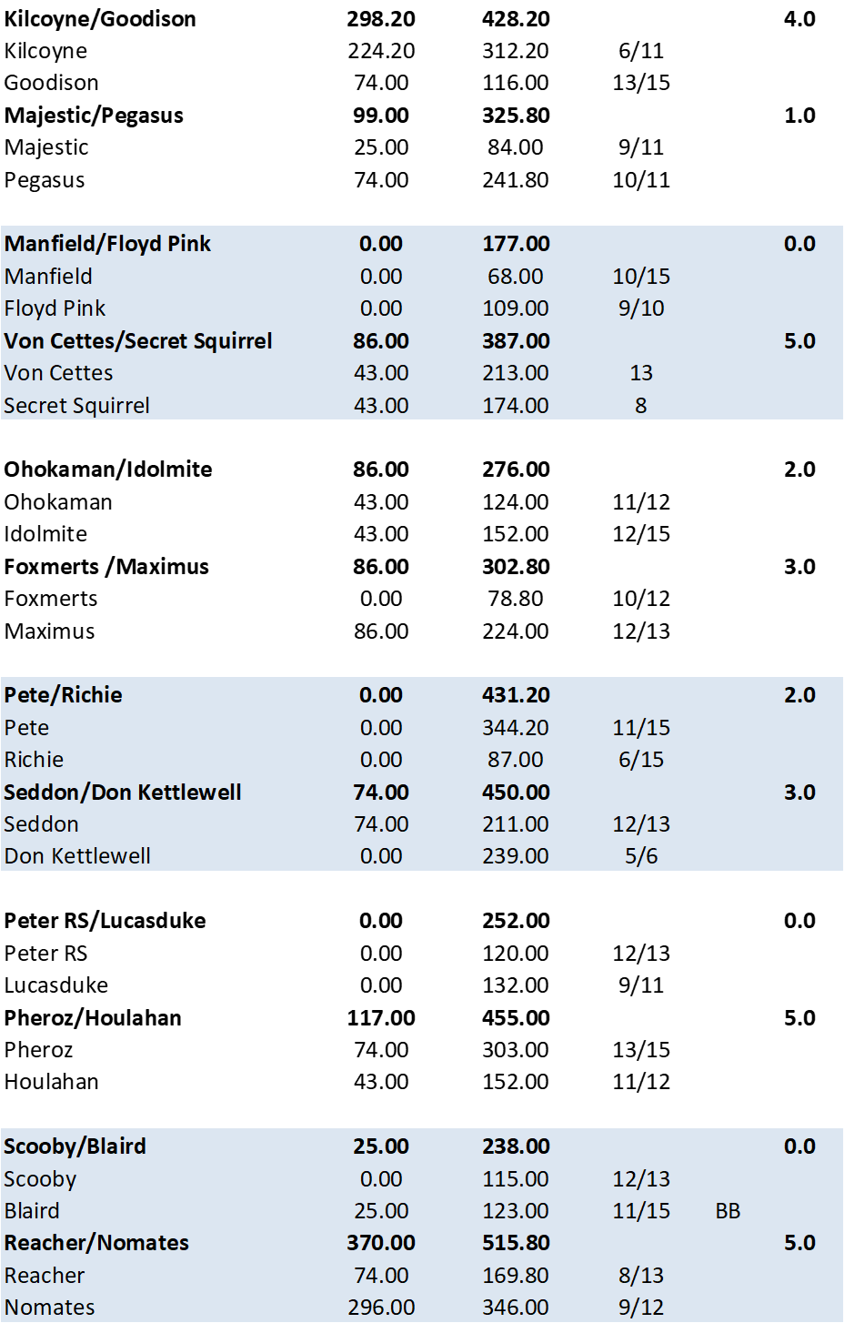 Yeah sorry Al.  I feel a bit bad about that - went through and picked them quite quickly at random and assigned the best bets randomly as well.