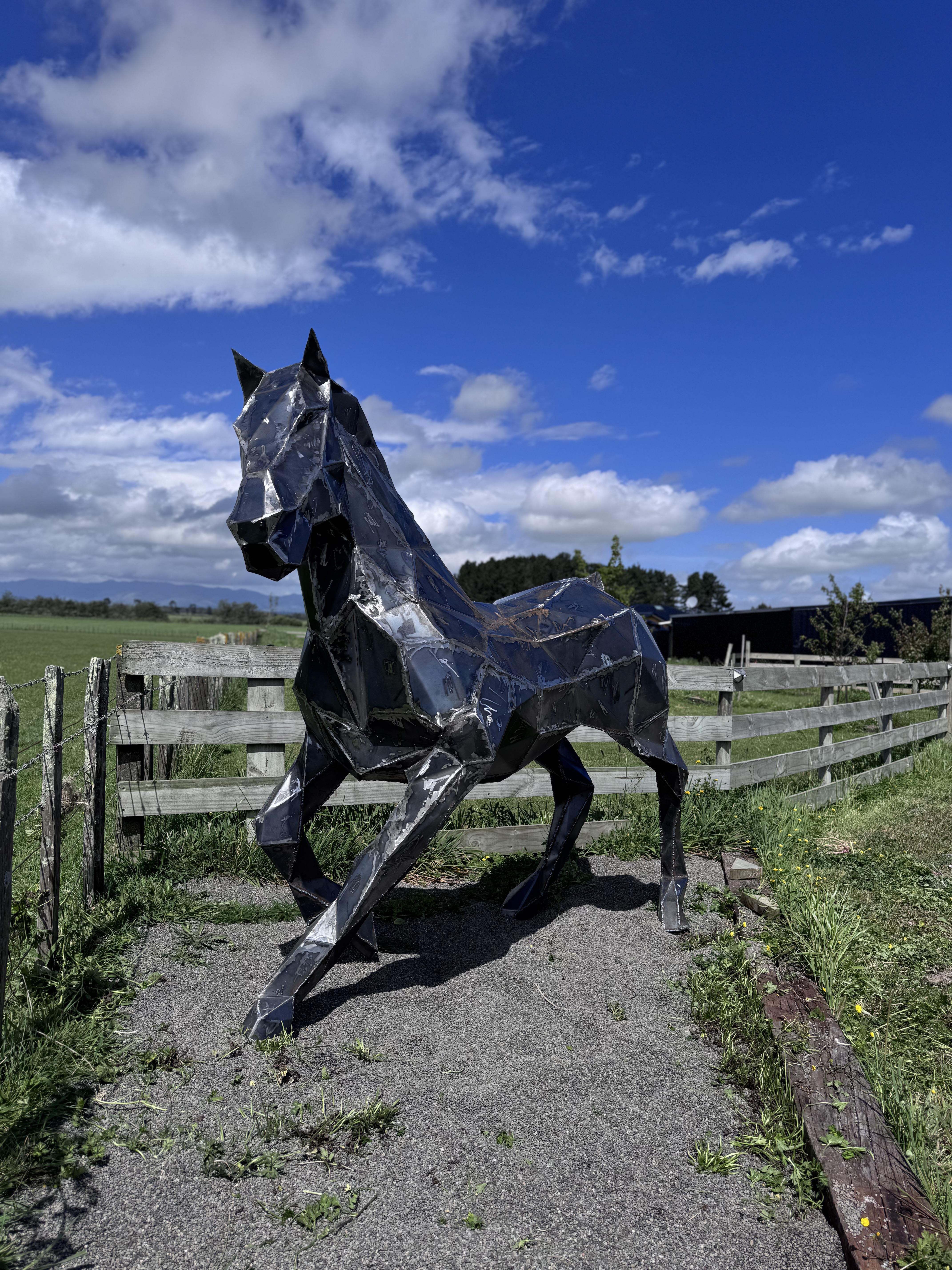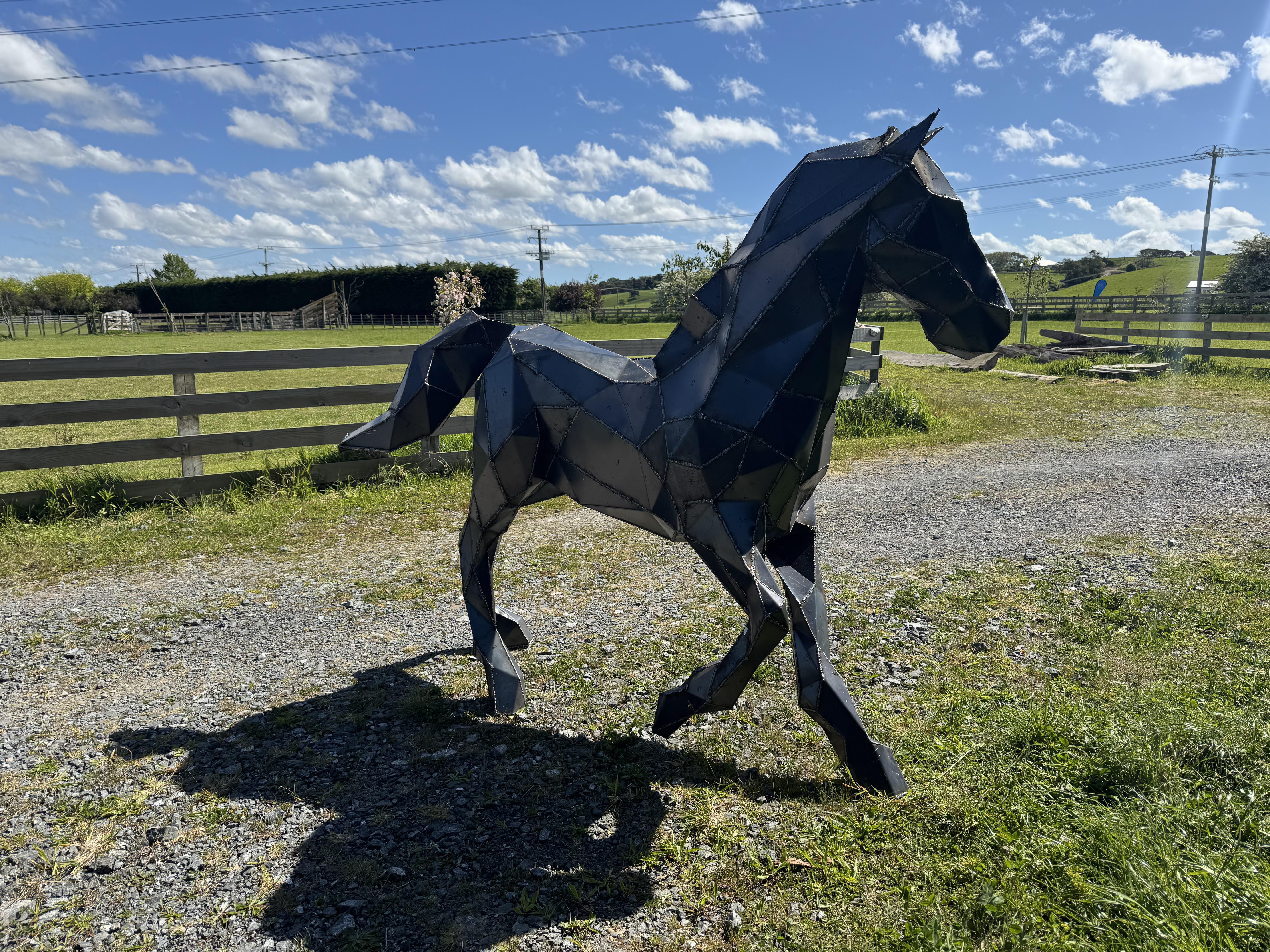 Forget the paddock - this steely stallion's ready to take center stage in your garden, driveway, or entryway. Standing proud at over 2 metros tall, this handcrafted Corten metal horse brings serious presence and industrial elegance to any setting.