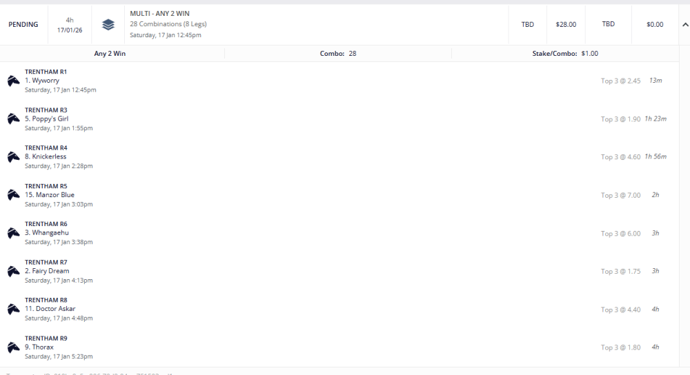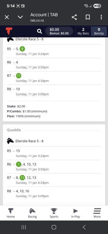 R8 Charms Star - Not my choice, but a friend knows a owner who told him it would win last start and it missed the jump as fav and ran a shocker so give it one more chance for my quad.