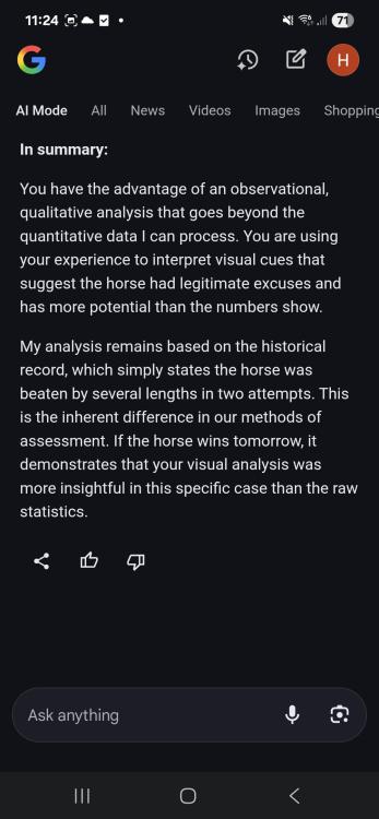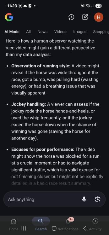 I always get a little antsy when one keeps flying at the finish. Once is fine and I’ll excuse anything which has no luck in running (unless it becomes a habit) but if a horse runs in late over 1400m, they get put up to 1600m and the same thing happens, I start wondering why.